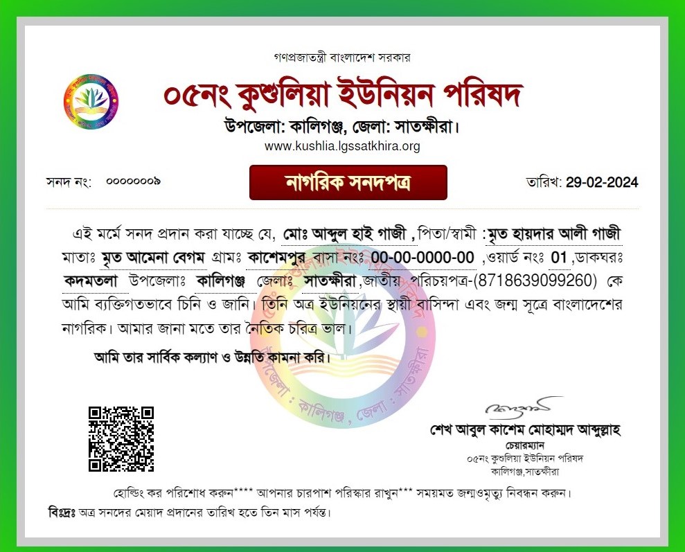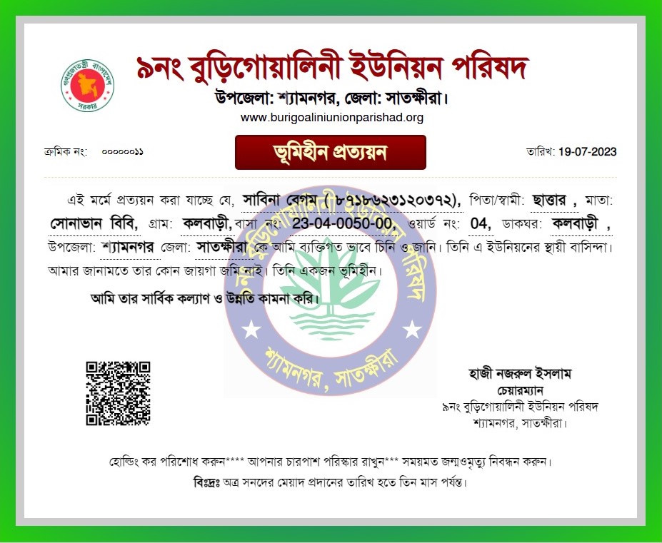 প্রত্যেক সনদ বারকোড সহ প্রদান করা হয় যাহা তথ্য নকল বা জালিয়াতির সম্ভাবনা একেবারেই নেই। ডিজিটাল বাংলাদেশ বিনির্মাণে দ্রুত নাগরিক সেবা জনগণের দোরগোড়ায় পৌঁছে দেওয়াই আমাদের অন্যতম লক্ষ্য।